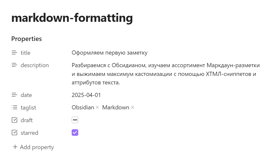 Если свойств у заметки нет — беда. Сходите в настройки, включите пользовательские плагины.